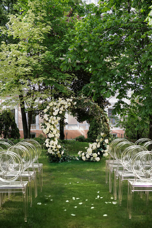 Утопающий в зелени приватный дворик — это красивое пространство для дизайнерского оформления, выездной свадебной церемоний и отдыха Ваших гостей